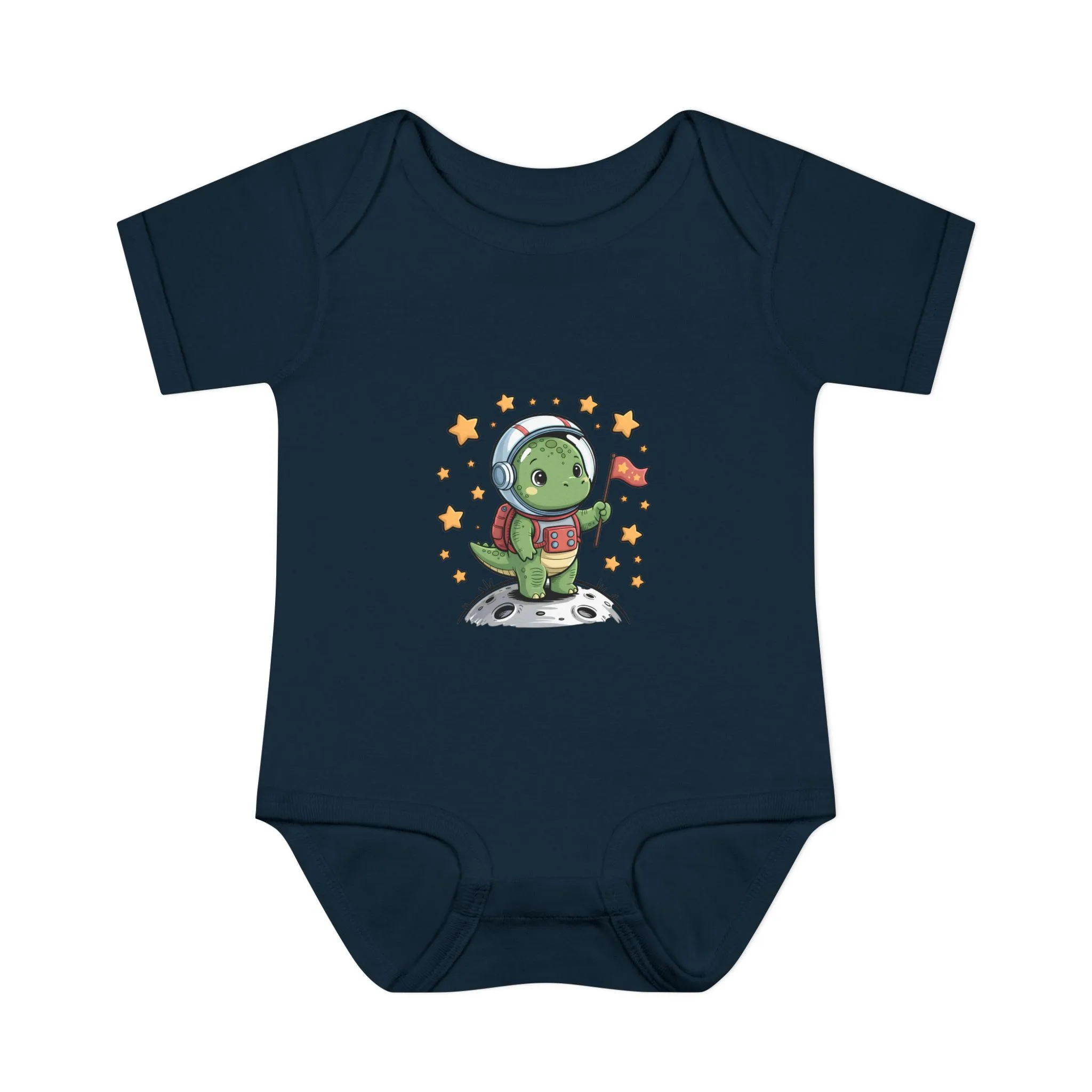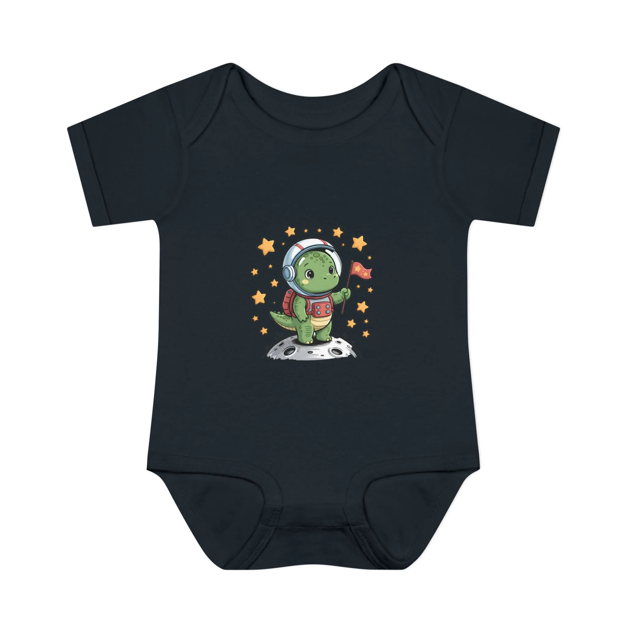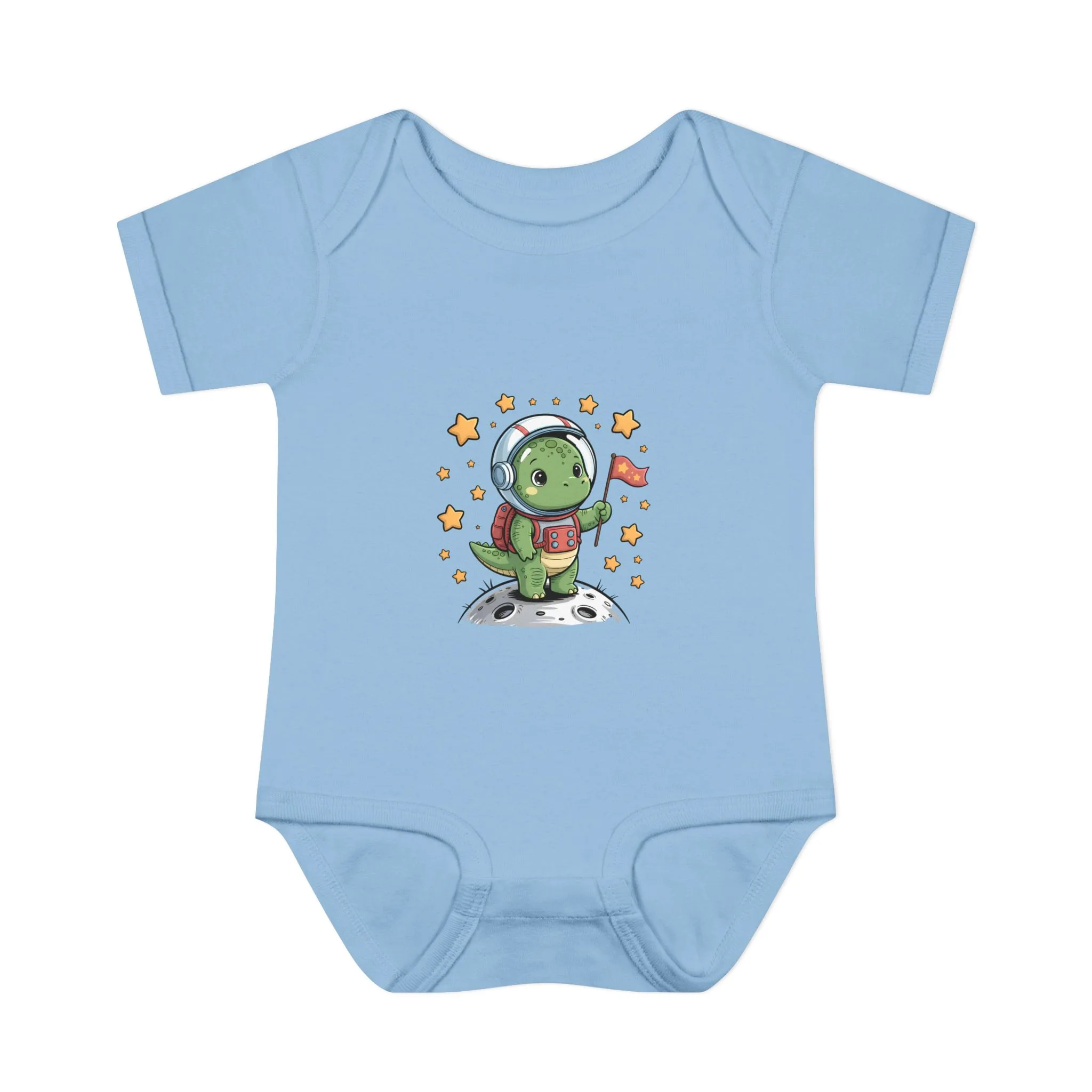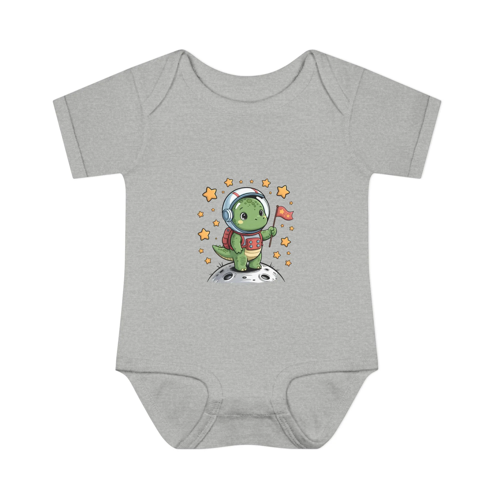Cute Space Explorer Baby Bodysuit is an adorable long sleeve outfit featuring a cartoon dino design. This baby bodysuit brings cozy comfort and playful cosmic vibes to your little one’s wardrobe.