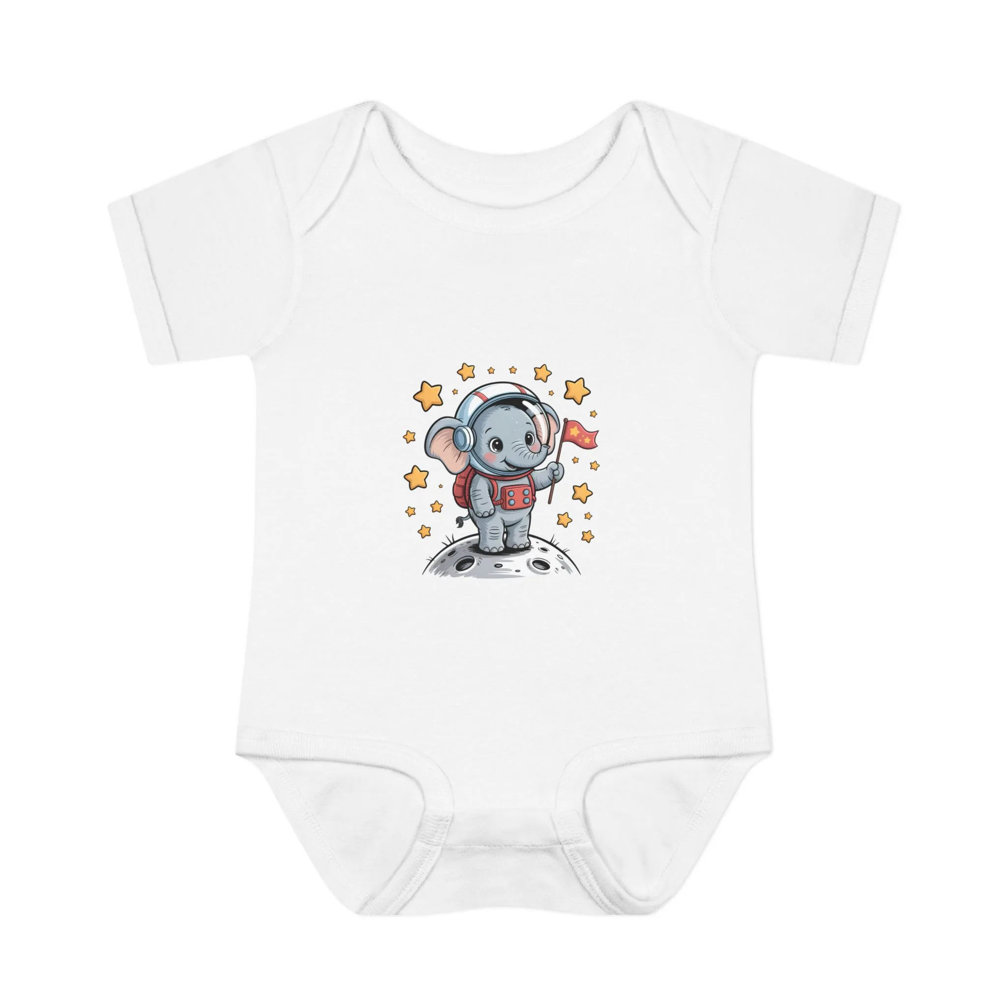 Cartoon Elephant Short Sleeve Baby Bodysuit – Cute Astronaut Costume
