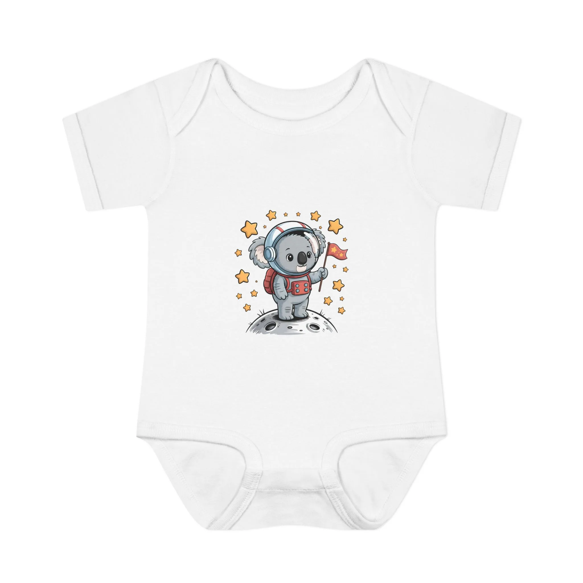 Cartoon Koala Short Sleeve Baby Bodysuit – Cute Space Explorer Outfit