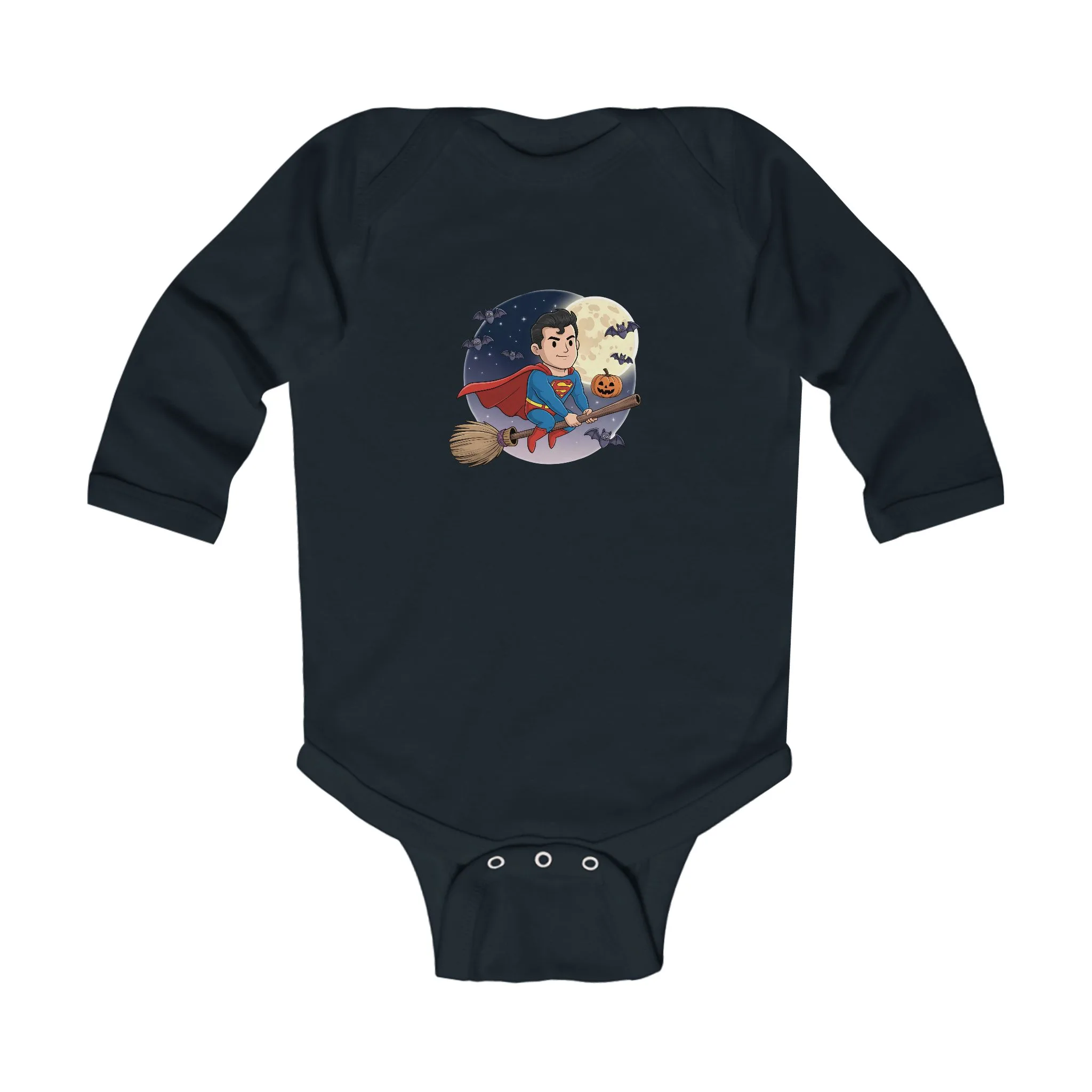 Cartoon Superman Long Sleeve Baby Bodysuit – Cute Witch Halloween Outfit