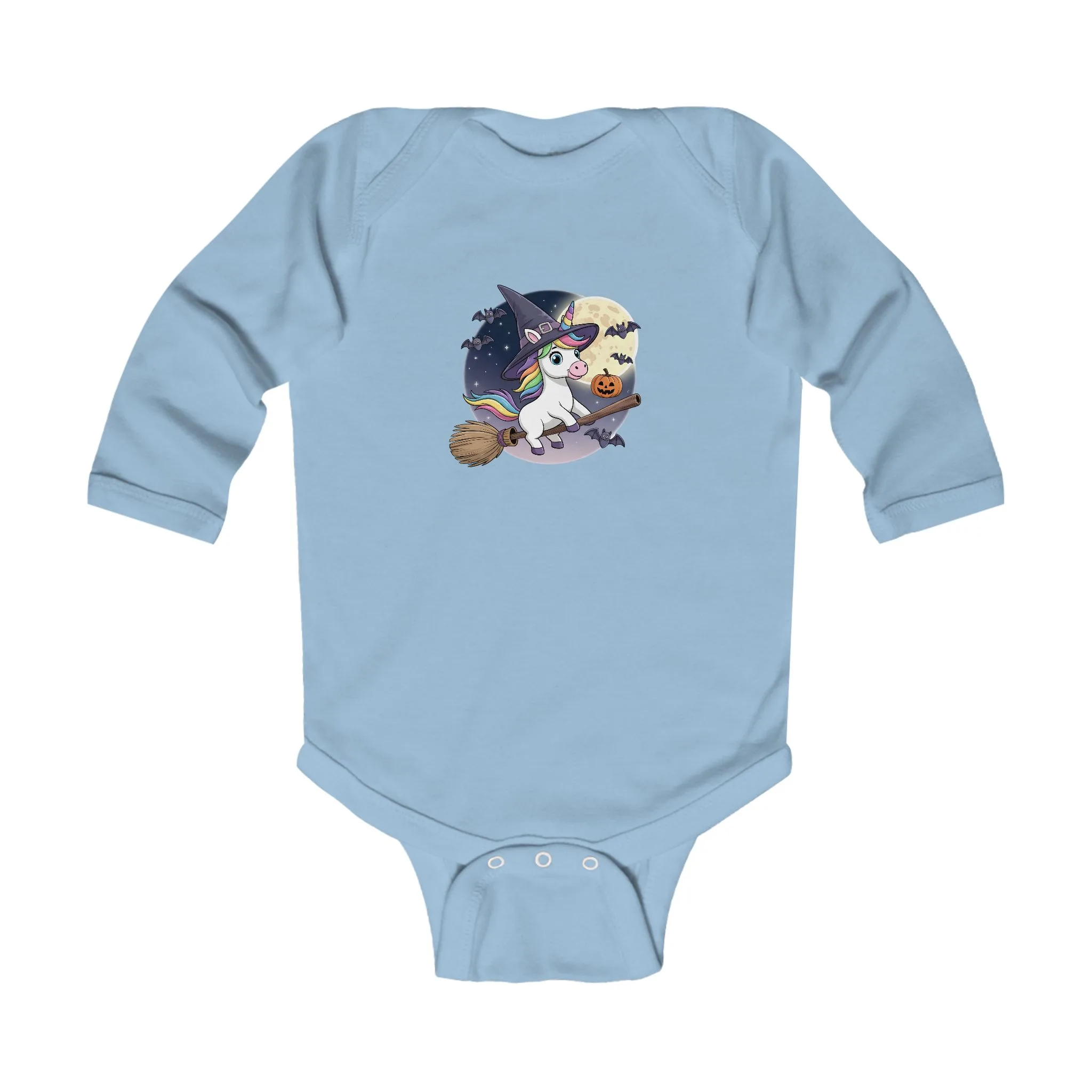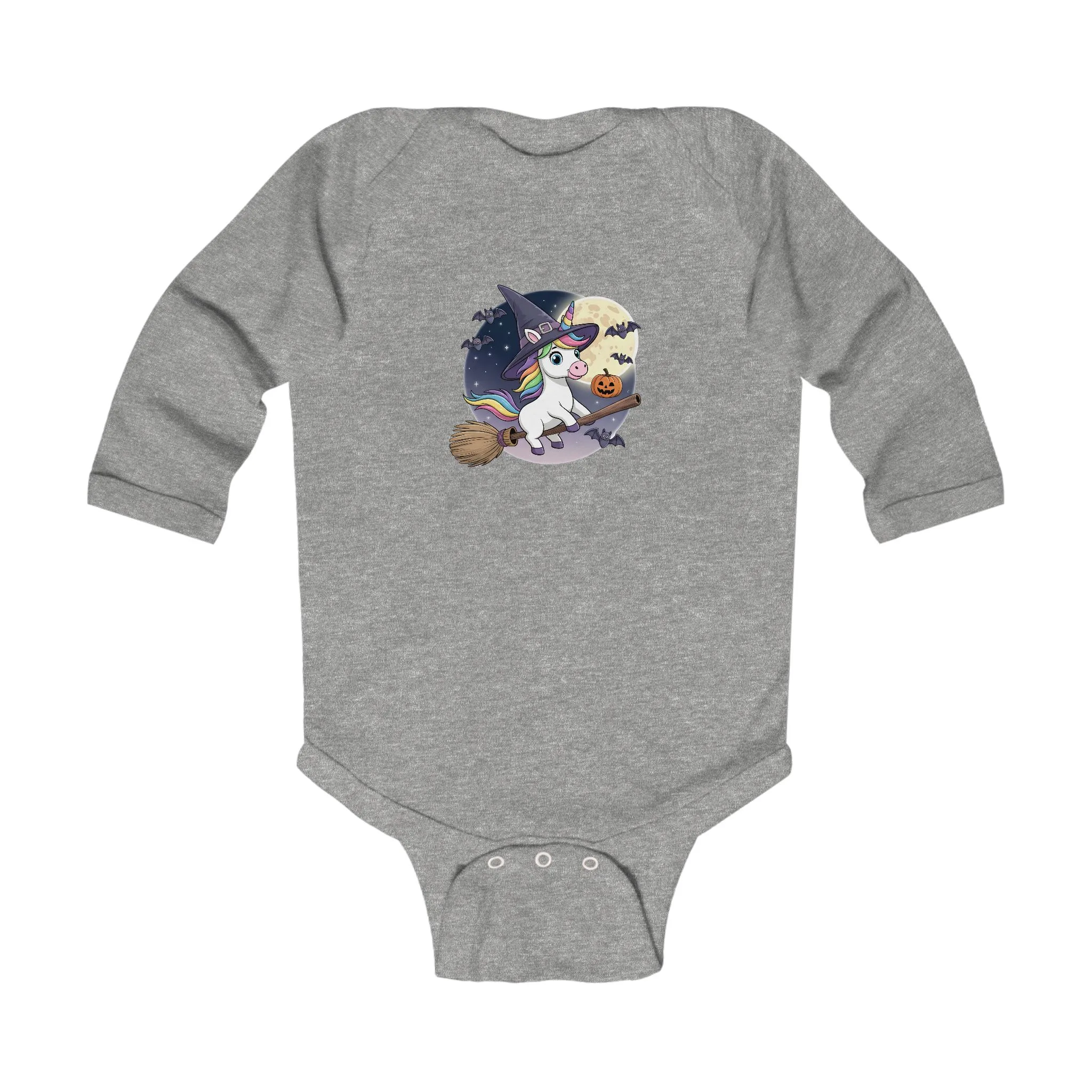 Cartoon Unicorn Long Sleeve Baby Bodysuit – Cute Witch Halloween Outfit