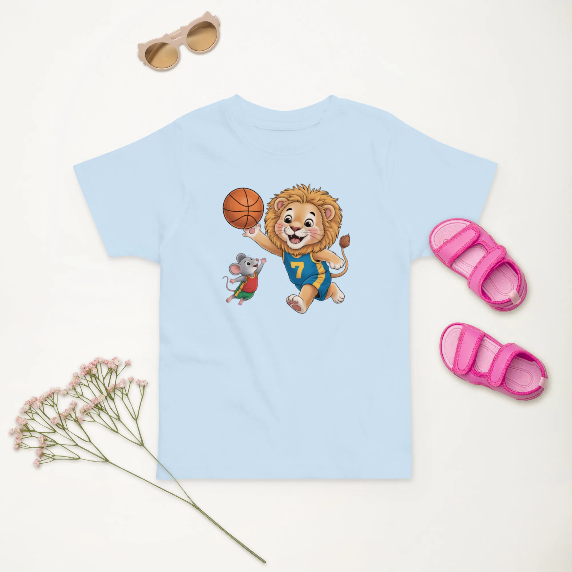 Lion & Mouse Playing Basketball Toddler Jersey T-Shirt | Rabbit Skins 3321