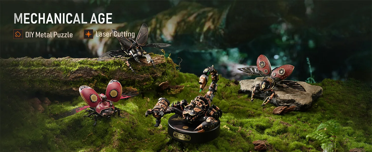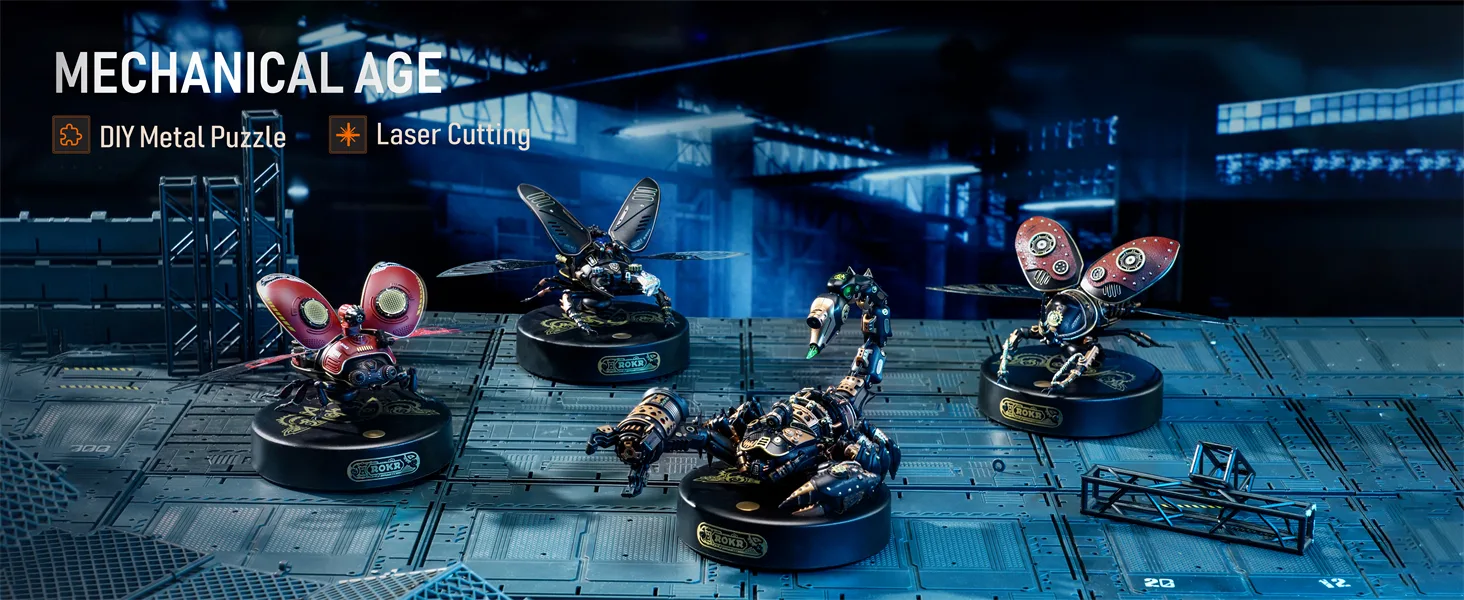 The Rokr Emperor Scorpion model is a DIY 3D puzzle crafted from ABS polymer, metal, and leather for a steampunk aesthetic. With a medium difficulty level, it’s a great project for teens and adults looking for a cool design and straightforward assembly. Once completed, it can be displayed on an industrial-style pedestal in all its retro-futuristic glory.
